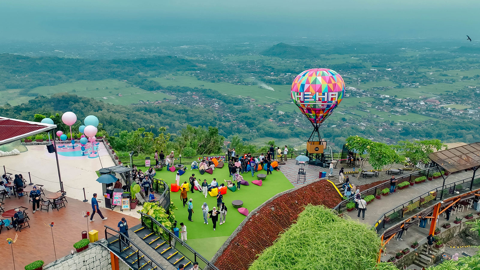HeHa Sky View adalah one-stop destination paling ideal di Yogyakarta untuk keluarga. Berlokasi strategis di Patuk, tempat ini menawarkan segalanya dalam satu kawasan: restoran, food stalls, taman, dan spot foto ikonik.